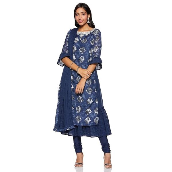 Be the first to review “BIBA Women Art Silk A-Line Kurta Churidar Suit Set”