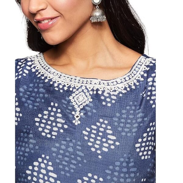 The Blue Polyester Printed A-Line Kurta Slim Pants Suit Set combines classic beauty and vintage charm, making it ideal for semi-formal occasions. This set includes a blue printed suit with a dupatta, offering a stylish ensemble. Crafted with high-quality flex fabric, it guarantees both elegance and comfort. Complete your look with platform heels and a thread work bracelet for a chic and fashionable appearance. Leave a lasting impression at any event with this captivating suit set.