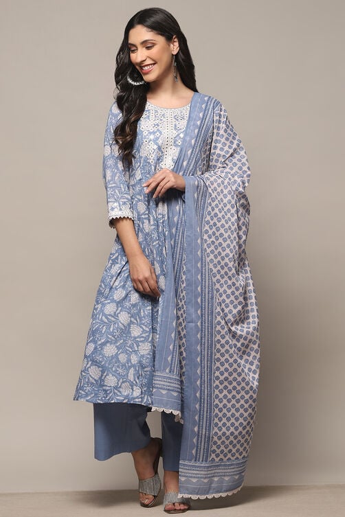 Embrace the essence of casual elegance with our powder blue cotton Anarkali suit set, designed for women who appreciate grace and comfort. Made from 100% cotton, this 3-piece ensemble features a kurta, palazzo, and dupatta, each piece showcasing a harmonious blend of soft hues and subtle prints. The round-neck kurta, with its flared Anarkali silhouette and 3/4th sleeves, offers a timeless appeal that flatters every body type. Ideal for day outings, casual meet-ups, or light festive occasions, complement this outfit with minimalist silver jewellery and a matching powder blue clutch to accentuate its tranquil beauty.